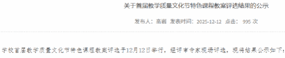 近日,学校质量管理与评价处公布了《关于首届教学质量文化节特色课程教案评选结果的公示》,电影天堂