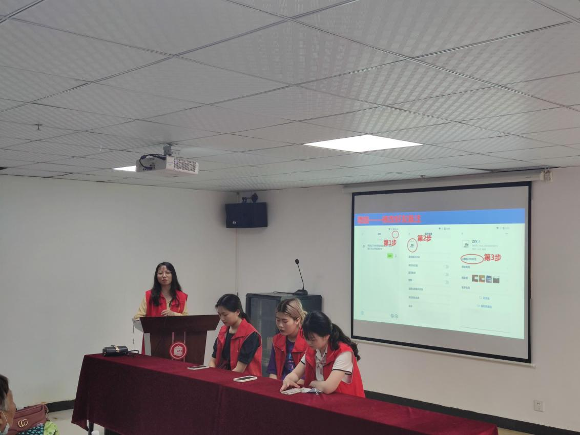 在活动中,志愿者们为老人们做手机常用软件的使用方法介绍,包括微信、抖音、高德地图、网易云音乐等。主讲人杨茜思路清晰、生动有趣的讲解引人入胜,老人们被智能手机丰富的内容、强大的功能所吸引,学习热情高涨。