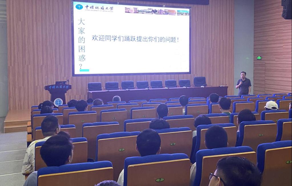 师生互动环节,同学们针对学科竞赛领域、专业前沿领域、就业领域提问,并由老师们给出了有关方面的详细建议。