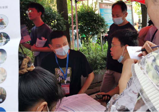 线下组的老师们顶着烈日,冒着酷暑跑点赶场,这是电影天堂 招宣人的“跑酷”日常,但大家干劲十足,人累心不累。黄燕霞老师说自己最大的感受是:“虽然第一天就淋了一身大雨,但看到很多学生和家长慕名找过来,深深感觉到很多工作做了和没做,用心做和随便做,效果就是不一样”。石剑峰老师说:“学院正以肉眼可见的速度越来越好,我们的展位经常C位出镜,人气越来越旺,这让我们计科人倍感骄傲和自豪”。