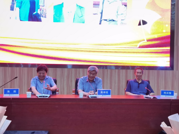 副院长张冬梅第一个发言。她表达了对朱老师关爱学生、何老师淡泊名利、吴老师科技报国情怀的崇敬之情,讲述了自己同恩师朱莉之间的点滴故事,并表示继续向三位老师学习,艰苦奋斗,为教育这份事业奉献自己。