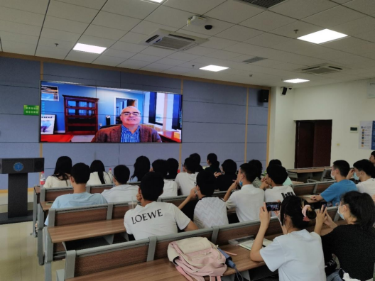 全体师生一同观看美国伊利诺伊理工大学计算学院院长Lance Fortnow录制的欢迎视频。在视频中,Lance Fortnow向第二届合作办学学生表示诚挚欢迎,他希望能和同学们保持密切沟通,并期待三年后与同学们在芝加哥校园相遇。