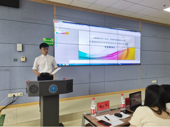 张冬梅做项目介绍,她从基本情况、师资队伍、招生情况、课程情况等方面向同学们介绍了项目的整体情况,并希望同学们在校期间培养专业素养和实践能力、提升英语水平,努力成长为德智体美劳全面发展的国际化人才。