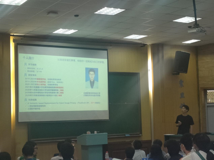 2018级本科生田冰从科研创新方面给大家带来了别样的大学体验。不论是顿顿由你、南望晶生这些耳熟能详的微信小程序的开发,还是基于语义的事件图像隐私替换方法这些科研经历,亦或是数不胜数的竞赛奖项与社会实践,田冰用一段段成长经历,向大家书写了“计科标杆”四个字的内涵所在;