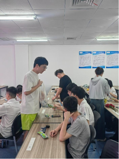 正值初夏、天气炎热,为给同学们解暑,老师们特地为同学们准备了冰棍雪糕,和老师们一起吃着雪糕的同学们愈发敞开心扉,会场气氛愈发活跃了起来。