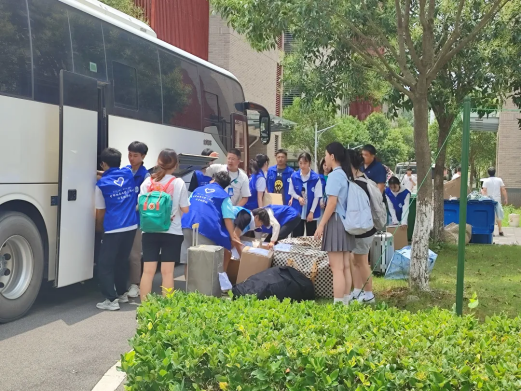 一切都在有条不紊地进行,人心也和季节一样浮泛着温度。三批车队安全接送,志愿者们热心协调。许多男生主动帮助女生搬运行李,搬迁停车的每个位点也都有老师在认真负责协调指挥。