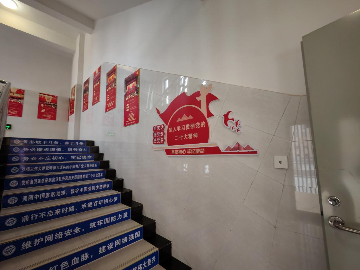 注重宿舍园区建设,在一组团三栋男生宿舍,打造特色党建园区。将学习党的二十大特色主题教育融入园区环境,将“回顾·伟大时刻”特色海报进行展出。制作学院“红色信息工程师”特色系列标语、特色活动剪影照片墙和“卓越之路 攀登高峰”榜样专栏。