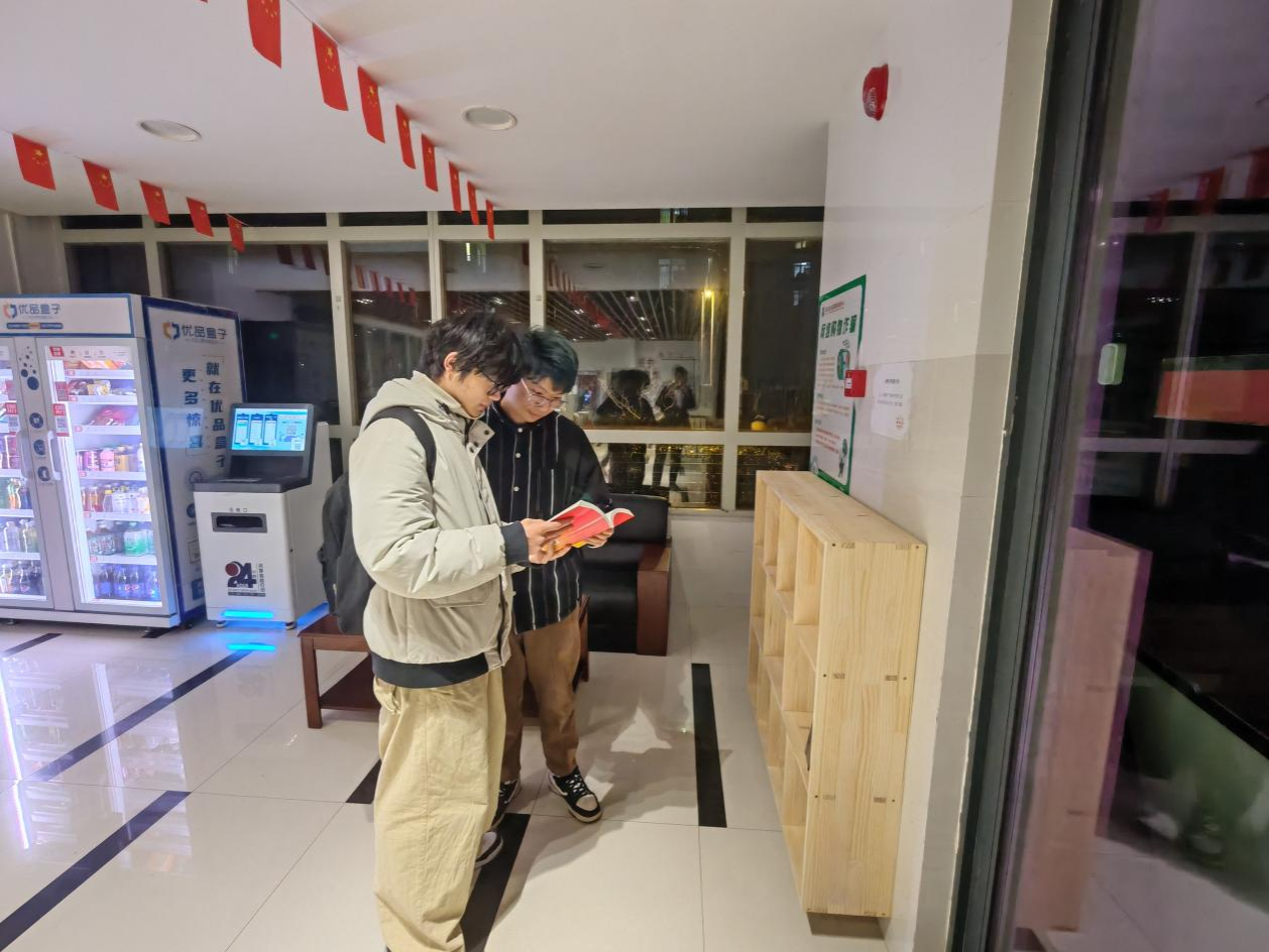 打造思政教育、专业教育、廉政教育三位一体的园区图书角,创设积极向上的学习氛围,让学生随时学、随时论。