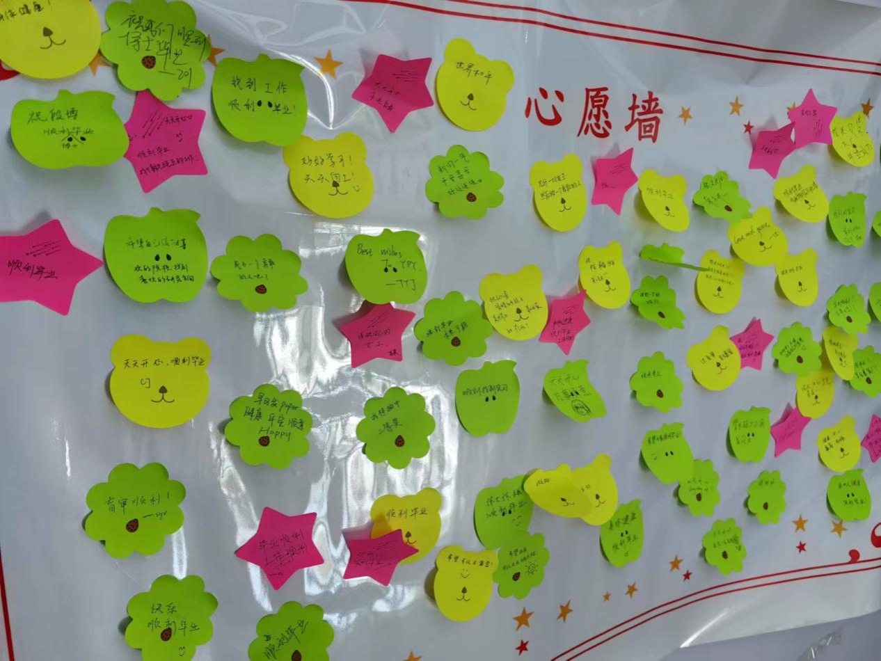 学院领导带队,走访了未来城校区413间本科生宿舍和46间研究生实验室,向同学们送上新年贺卡和棒棒糖。走访过程中深入了解学生的思想状态,学习生活情况及其面临的困难与挑战,进而为学院提供针对性的工作方案,确保学生健康、平稳地适应新学期生活。为缓解学生新学期压力,设置学生心愿墙,拉近师生之间的距离,增强学生对学院的归属感和认同感。