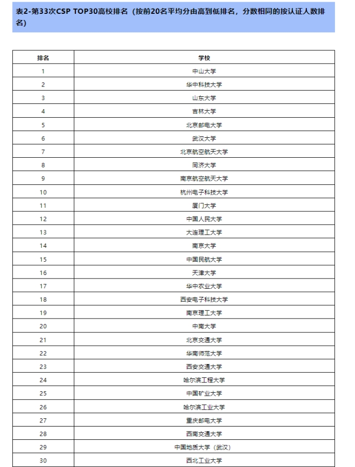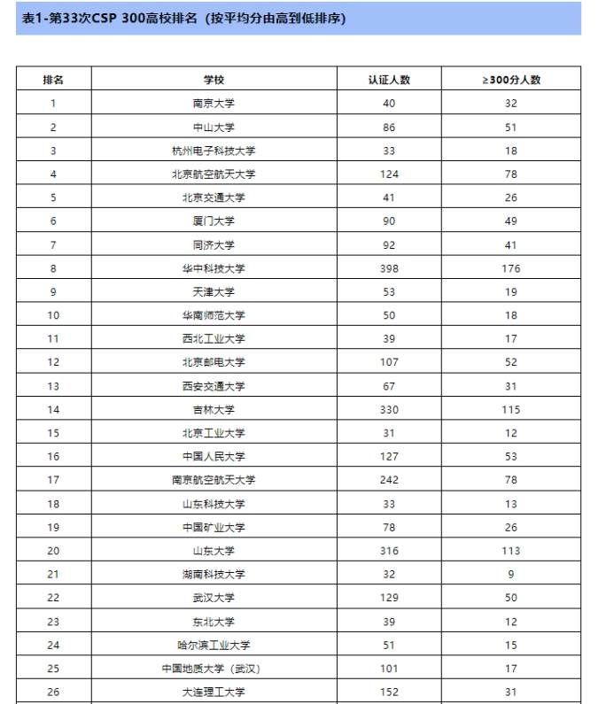 2024年3月31日,第33次CCF CSP认证考试成功举行。电影天堂 学子取得CSP 300高校排名第25位,CSP TOP30高校排名第29位的优异成绩!