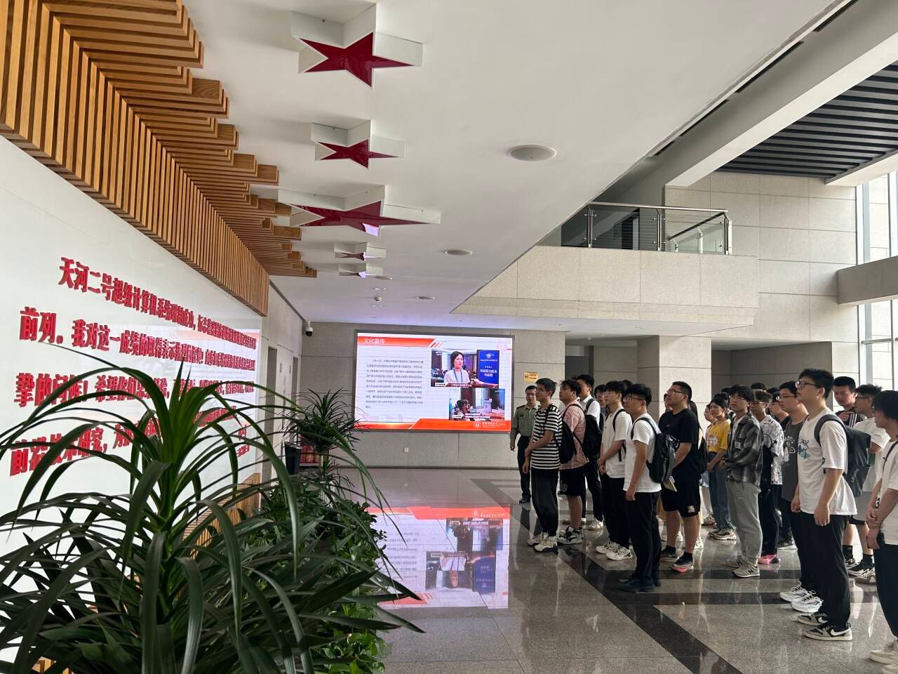 18日上午,国防科技大学贾孟涵老师对学院一行表示欢迎。随后一同参观国防科技大学电影天堂 院士墙和天河二号超级计算中心,介绍国防科技大学发展历程及重大成果。通过学习超级计算机的工作原理、应用场景以及国际地位,同学们对数据处理和计算机科学与技术的认识更加清晰,同学们纷纷表示将个人梦想融入到科技报国的伟大事业中。