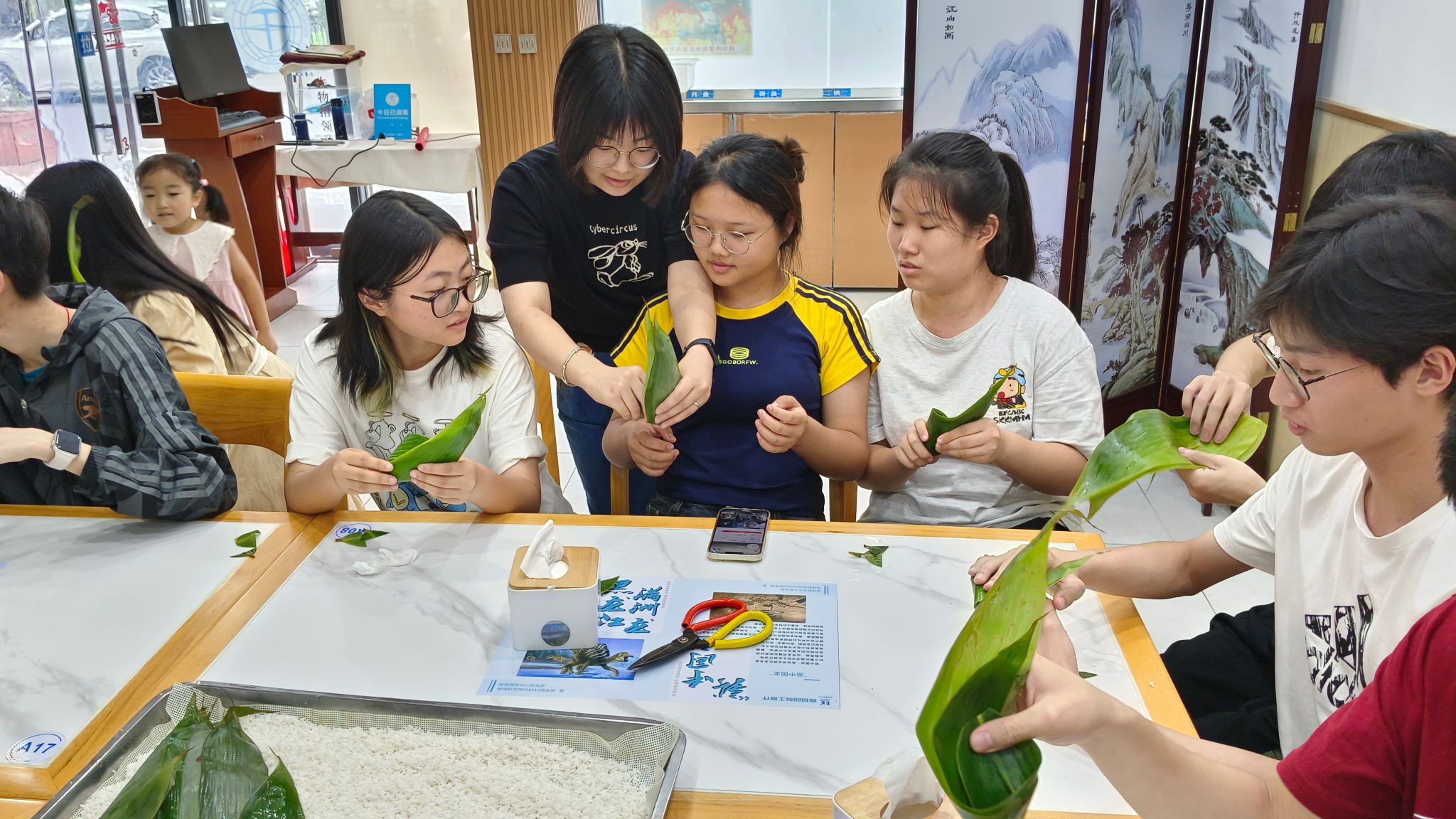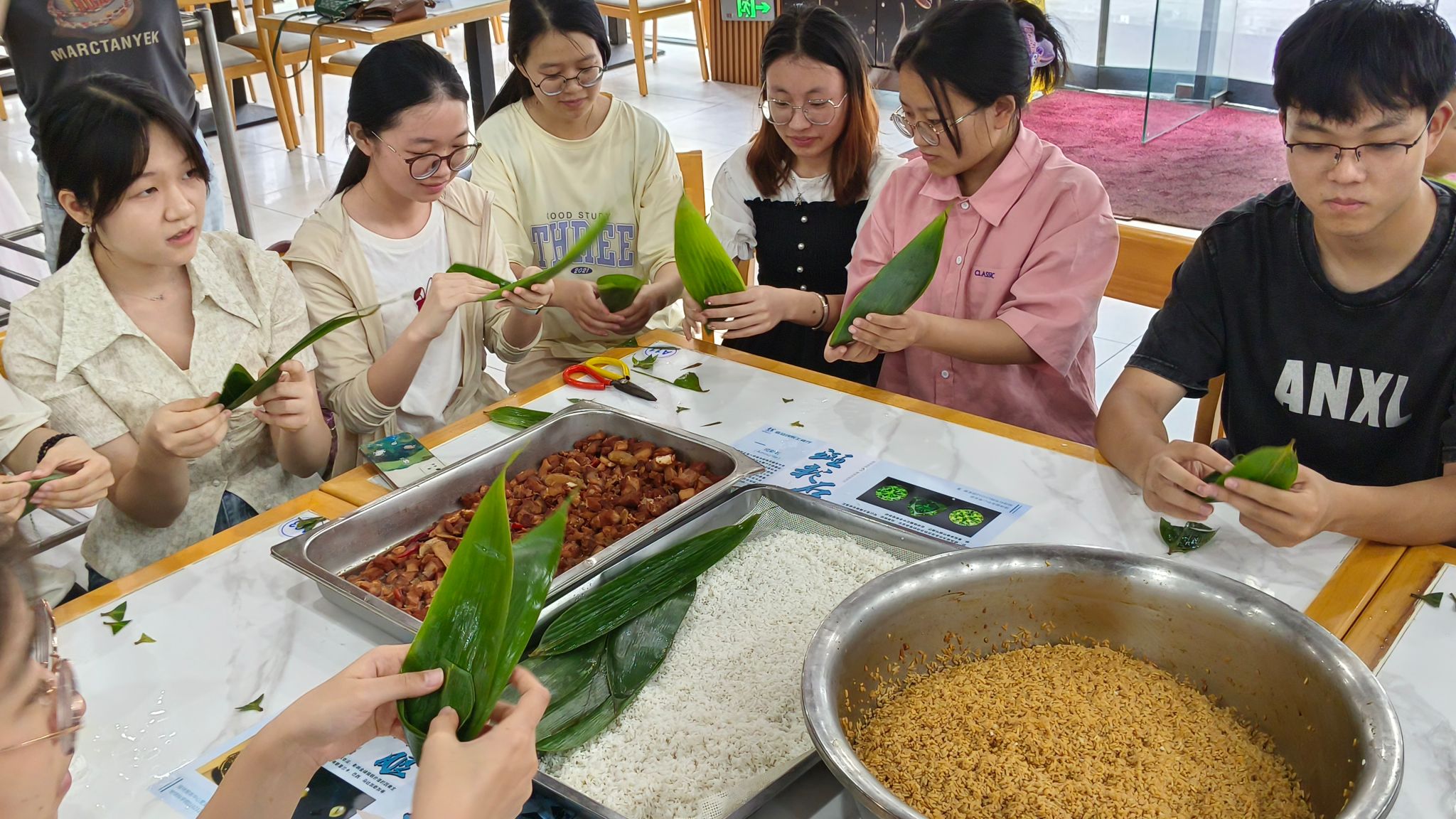 为进一步弘扬和培养爱国主义精神,传承中华优秀传统文化,贯彻劳动育人精神,丰富大学生的校园文化生活,6月10号下午,电影天堂 与接待服务中心党支部在震旦园教工餐厅共同开展“迎端午·包粽子”劳动教育活动。电影天堂 党委副书记、纪委书记林小艳,团委书记王太茂,团委副书记闫维蓉,辅导员刘佳丹及2023级30余名学生参加,活动由接待服务中心党支部书记吴华玉主持。