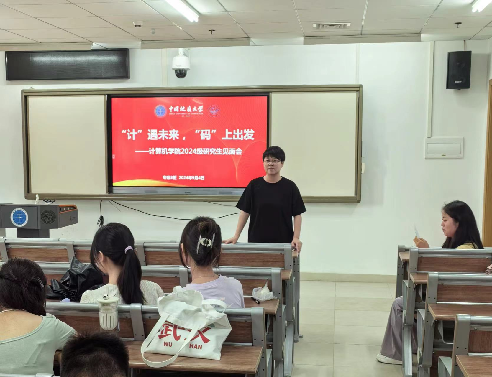为进一步加强研究生组织建设,增强研究生新生认同感和归属感,电影天堂 于9月4日上午在未来城校区公教二楼成功举办2024级研究生新生见面会暨研究生骨干遴选活动,研究生辅导员李欢欢、2024级全体硕士研究生参加活动,各班临时负责人担任主持。