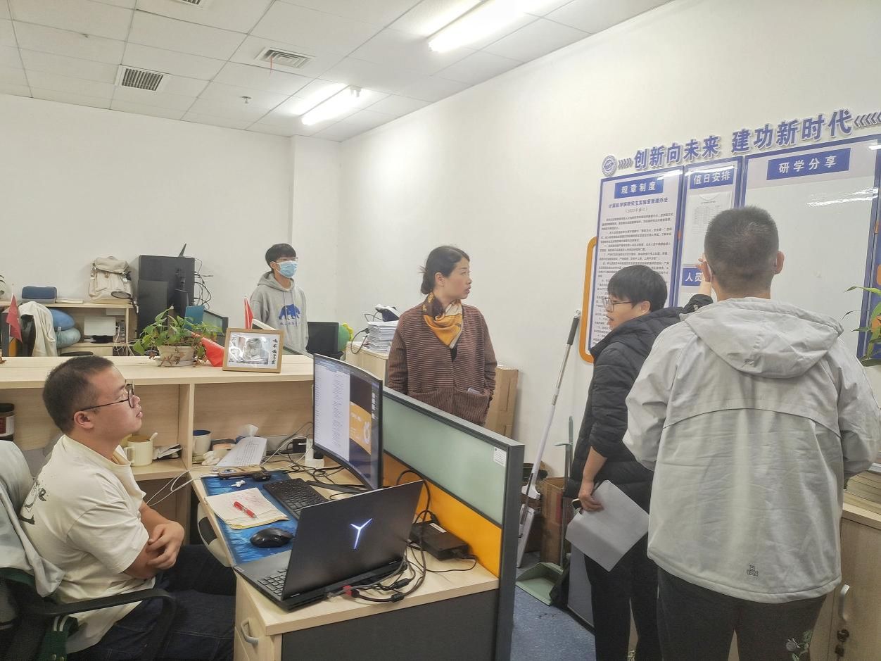 为深入推进研学空间建设,增强研究生安全教育管理,学院于2024年10月24日下午,开展第65期“我的实验室我呵护”实验室走访活动,电影天堂 副院长胡成玉、党委副书记林小艳、研究生辅导员李欢欢和研究生秘书黄果走访全院46间研究生实验室,了解同学们的科研进展和学习状态,巡查实验室安全卫生和日常管理情况。