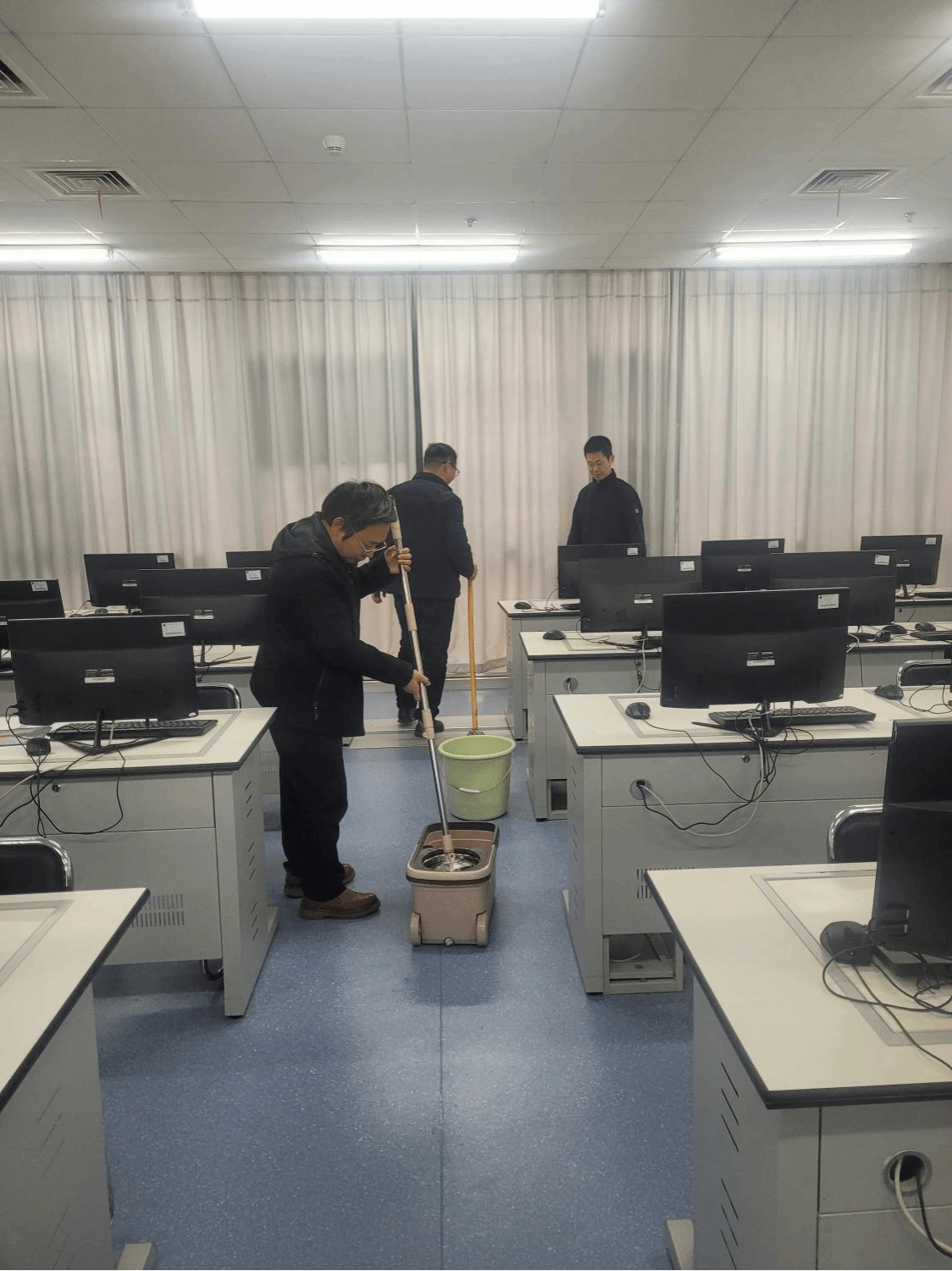 中心实验全体教师对电影天堂 的每个教学实验室进行了全面检查。深入到每一个角落,对实验场所、安全设施、基础安全、用电安全等方面进行了详细的专项检查。并对教学实验室进行了卫生打扫。