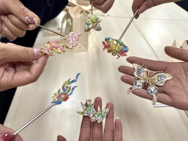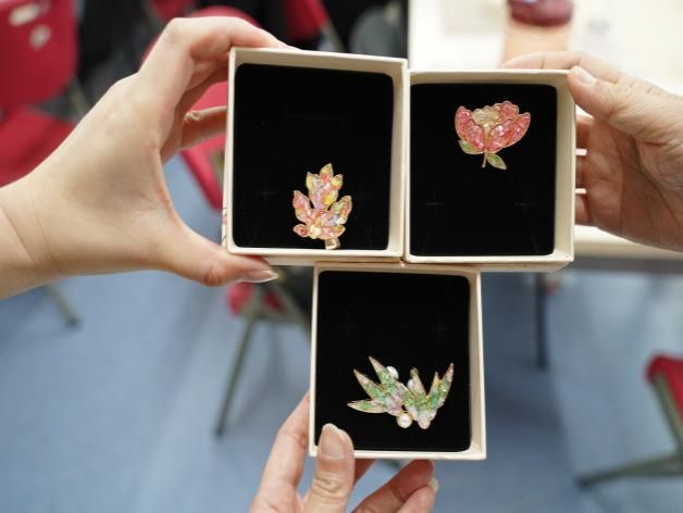 “这是献给女性科研工作者特有的浪漫”,李国昌凝视着老师们亲手制作的发簪,簪首上用螺钿镶嵌的蝴蝶与珍珠相映成趣。活动尾声,女老师们将作品捧在手心,螺钿的虹彩随着掌心摇曳,仿佛把楚地漆器的神秘、海上丝路的华美、数字时代的精准,都凝练成了新时代知识女性独有的风华。
