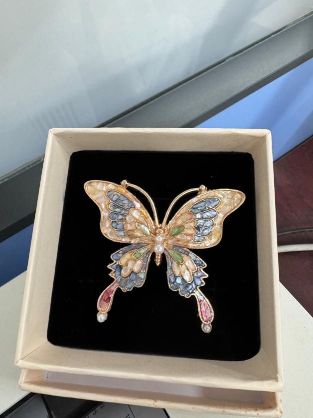 随着非遗手工老师的娓娓道来,螺钿艺术的神秘面纱被缓缓揭开。那细腻的讲解,如同春风化雨,老师们聚精会神,眼眸中闪烁着对传统文化的敬畏与向往。随着手工老师指尖翻飞,珍珠母贝薄片顿时在发簪上星河倾泻。女老师们暂时卸下科研重担,纤指执起蚌贝裁制的蝶翼,在合金簪首上铺陈星汉——青蚨贝化作藤蔓缠绕发簪,夜光螺凝成牡丹绽于胸针,珍珠母贝串起银河般的手链。林小艳老师凝神屏息,镊尖轻旋贝片角度,在智慧树图腾的枝桠间唤醒沉睡的星光,0.2毫米的贝母碎片竟折射出整个银河的辉光。卢笙老师将现代配色融入传统纹样,指尖的螺钿拼贴出灵动翩跹的蝴蝶。