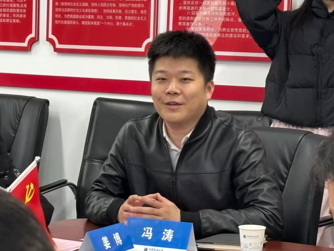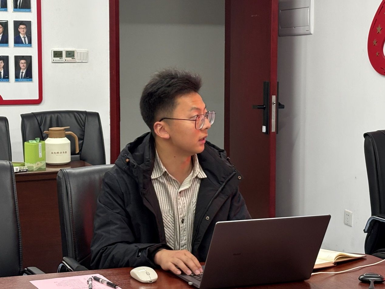 辅导员谭文博介绍学院学生工作情况和校企合作做法与成效。