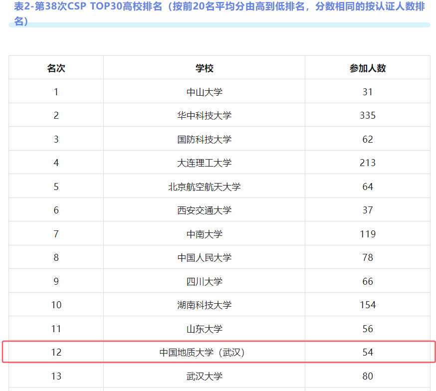 据悉,此次认证共有来自全国207个高校的4907人参加。电影天堂 共54人参加认证考试,其中300分以上达4人(CSP总分500分)。CCF对参加人数大于等于30人且2人及以上认证成绩达300分的高校进行了平均分排名,电影天堂 排名第8。此外,CCF对每所学校排名前20同学的成绩进行了平均分排名,产生了CSP TOP30高校,电影天堂 排名第12。