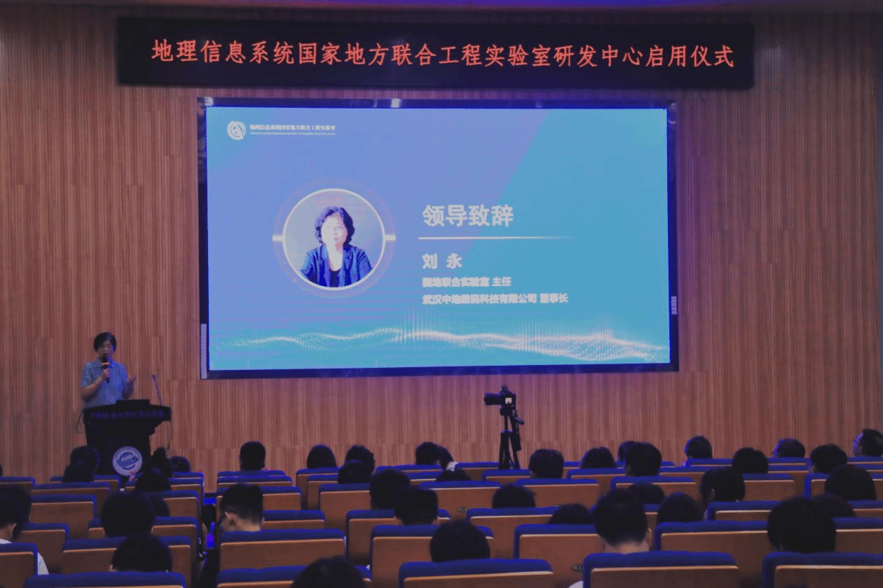 接下来,国地联合实验室主任、中地数码联合创始人、董事长刘永老师致辞。刘永老师表示中地数码诞生之初便是顺应国家的技术需要,现如今更是发展成为科技研发、人才培育、成果转化的中心汇聚地,鼓励尝试,包容试错。吴信才教授是MapGIS创始人,也是国地联合实验室的发起人,对国地实验室未来的发展一直抱有深切期待。吴教授终一生潜心治学,践行“一辈子,一件事”的教育和科研理念,为我国彩色地图编辑出版系统和国产地理信息系统的学术研究和产业发展作出了杰出贡献。