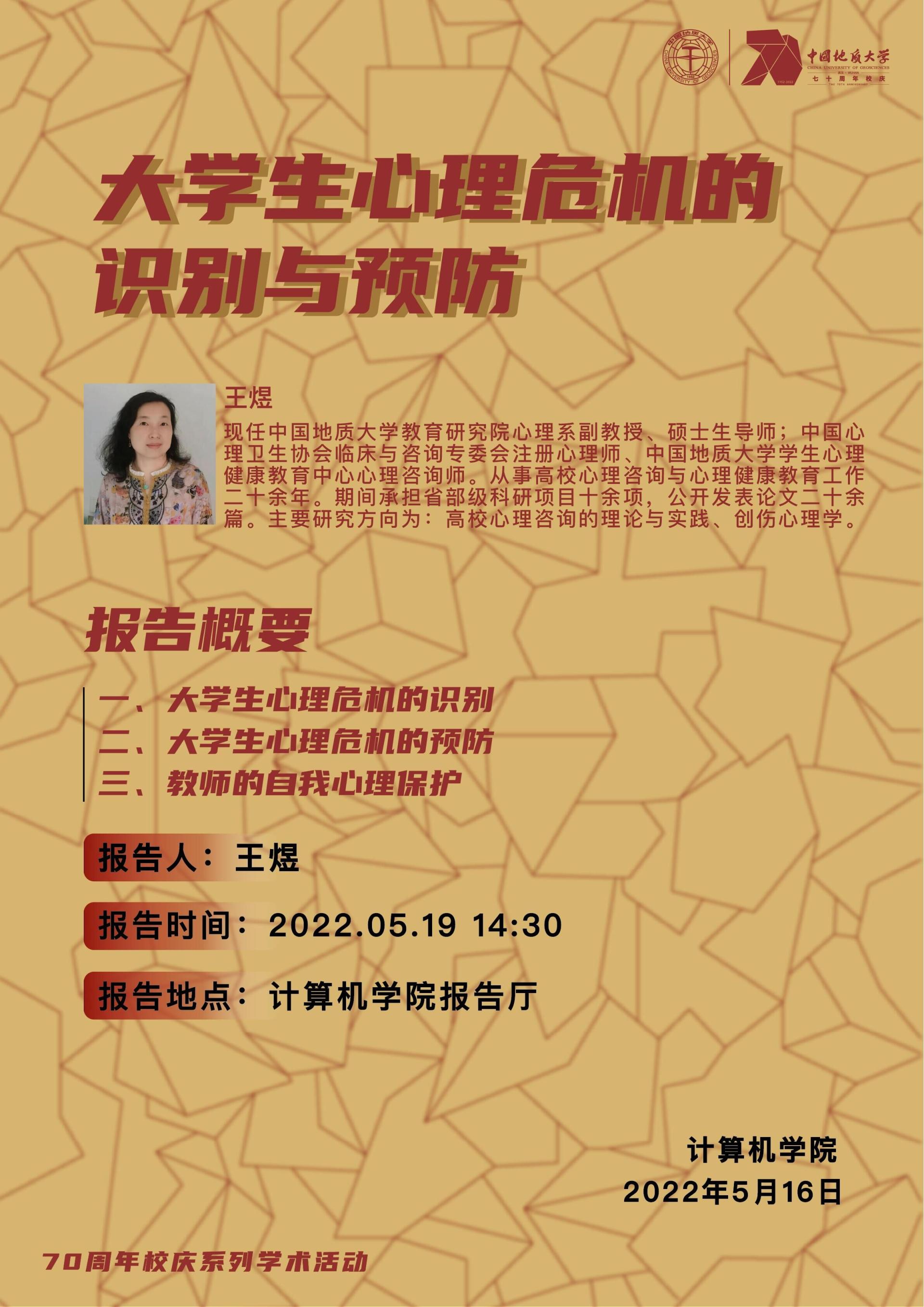 学术讲座——电影天堂 教育研究院心理系副教授王煜:大学生心理危机的识别与预防