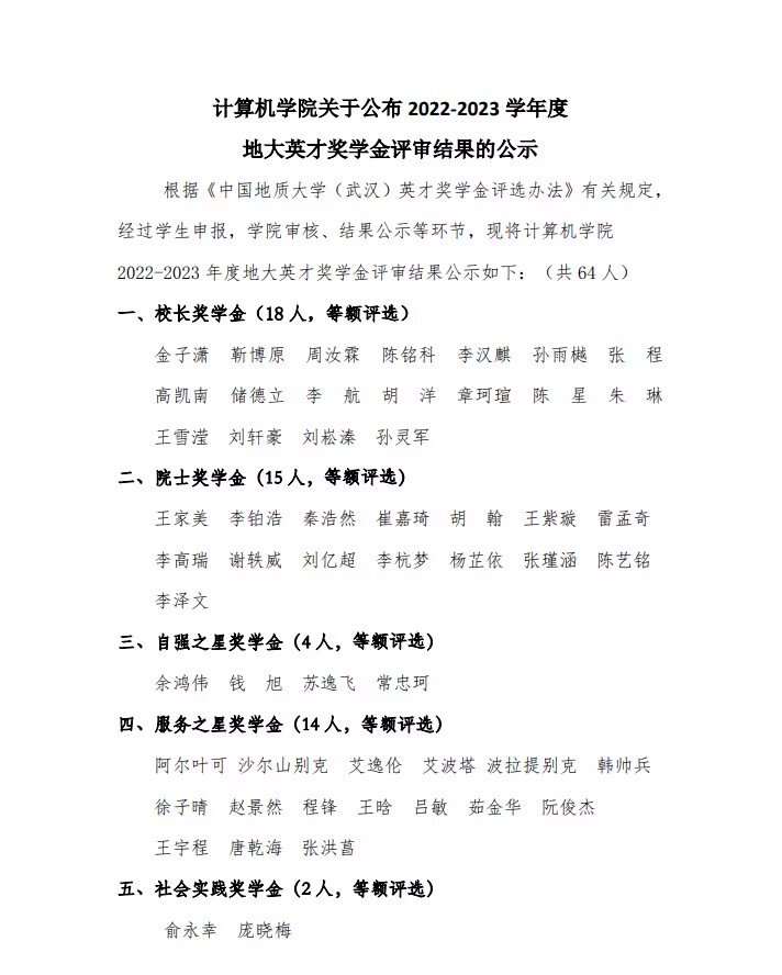 电影天堂 关于公布2022-2023学年度地大英才奖学金评审结果的公示