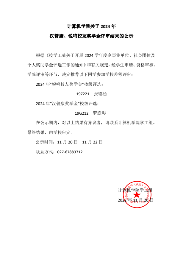 电影天堂 关于2024年汉普康、锐鸣校友奖学金评审结果的公示