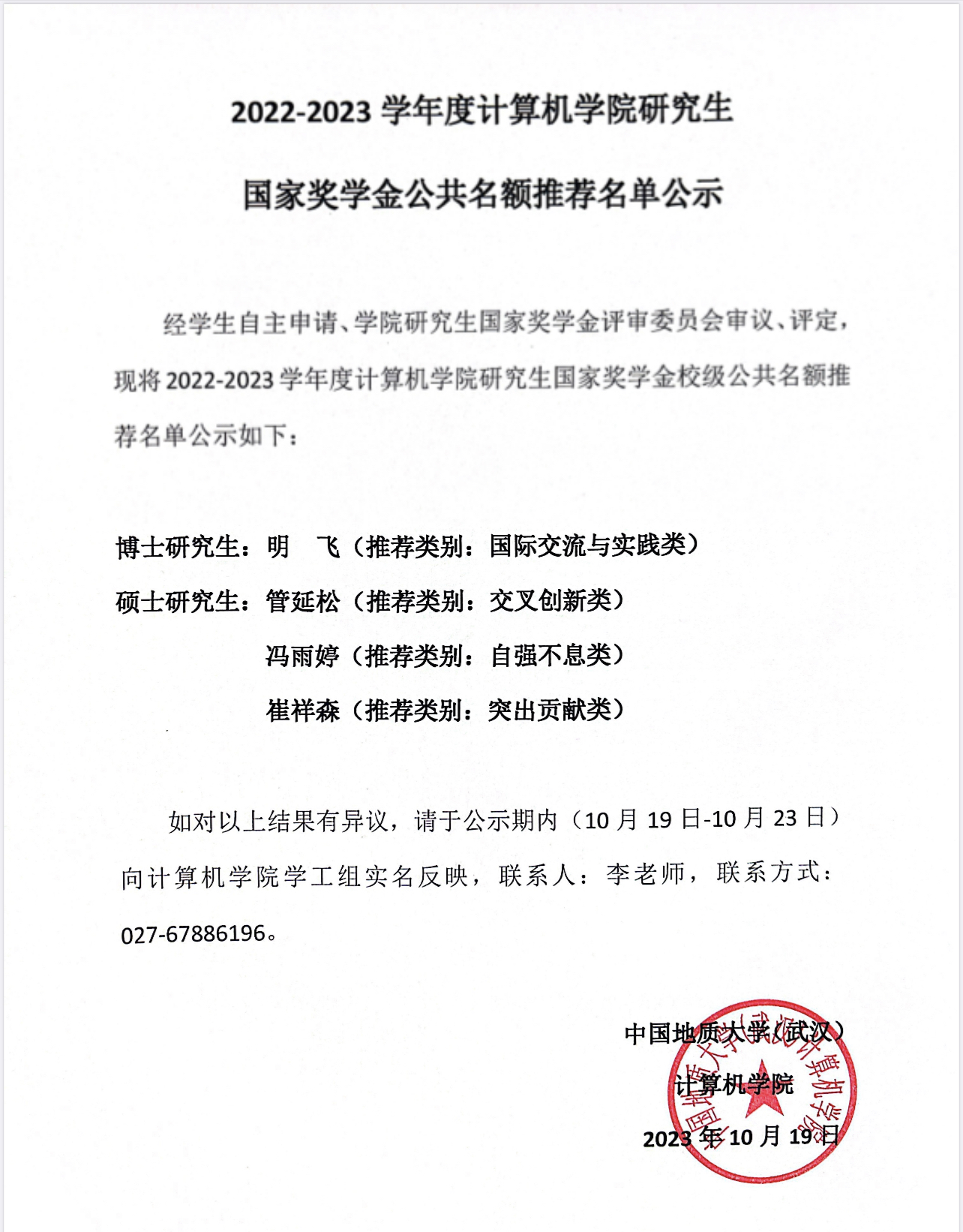 2022-2023学年电影天堂 研究生国家奖学金公共名额推荐名单公示