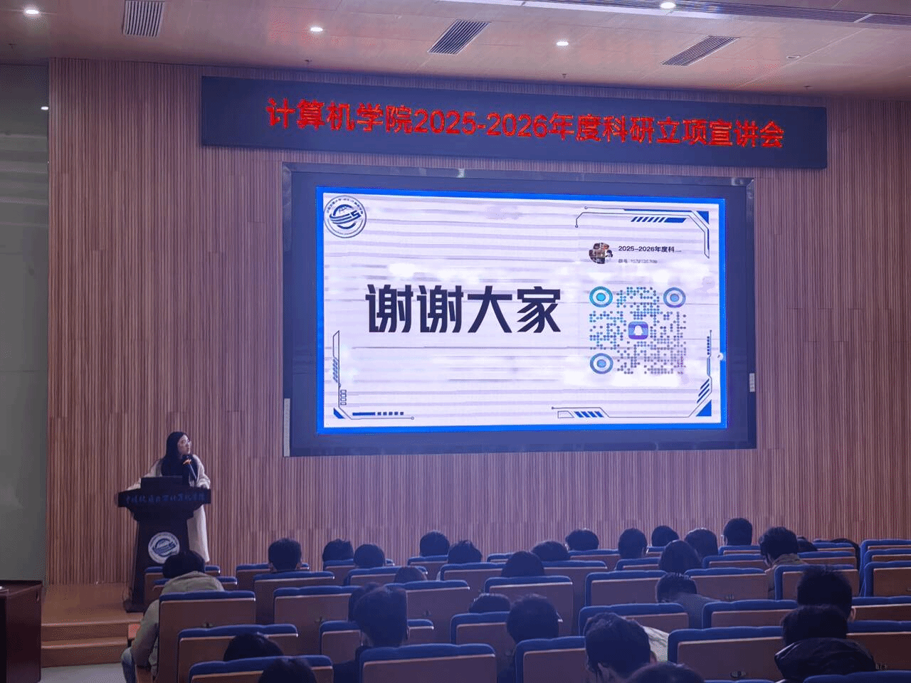 宣讲会最后,2024级辅导员刘佳丹老师结合自身经验,向在场同学分享了关于本科生科研的思考与建议。刘老师指出,大二阶段是开始系统性接触科研的黄金窗口期,同学们不必因“零基础”或“缺乏经验”而自我设限。科研的本质就是在探索中学习、在试错中成长。学院设立科研立项的初衷,正是希望同学们能以项目为牵引,主动走进实验室、融入科研团队、激发学术志趣。她鼓励大家把握机遇,勇于尝试,在真问题中锻炼真本领,在团队协作中学会沟通与担当,让科研实践成为大学生活中一段深刻而富有收获的成长经历。