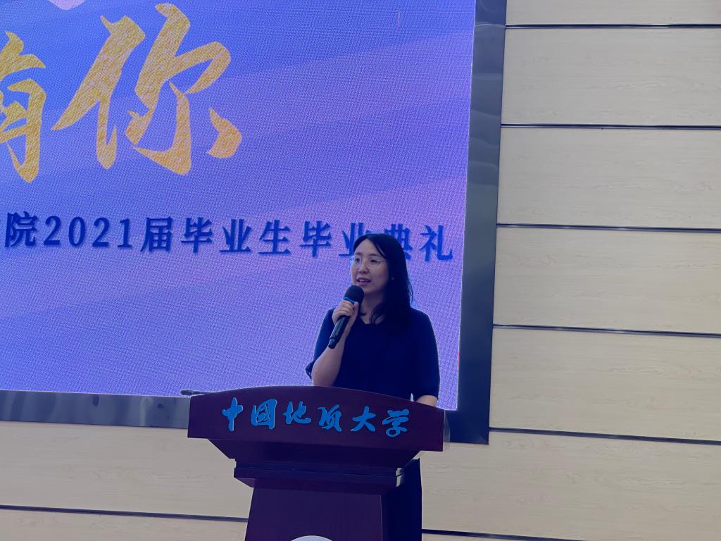2021届毕委会主任庞晨璇作为毕业生代表上台发言,她表达了对学校、学院、老师、同学以及父母的感激之情。