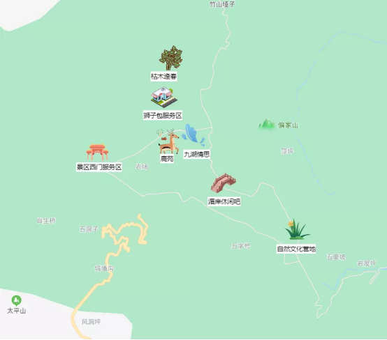 景区服务小程序以神农架大九湖国家湿地公园为试点,主要包括线上购票、园区地图、景点介绍、VR云游等功能,旨在看湿地、谈源头、寻古迹、访民俗、展科教。绘声绘色的景点介绍和身临其境的VR云游是小程序的两大亮点。团队成员通过实地考察、资料整理、游客采访等多种途径,制作大九湖景区内17个讲解点的语音文字介绍。