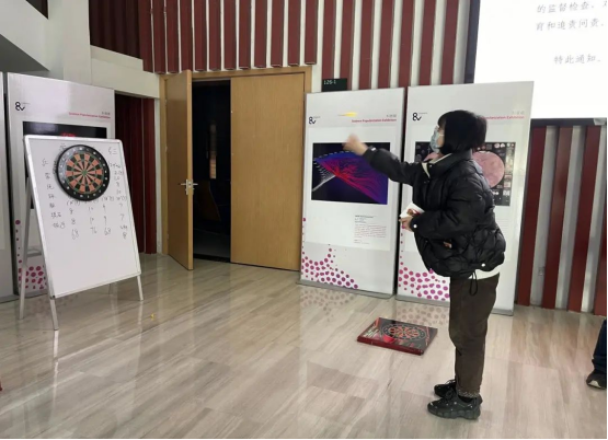 “实践是检验真理的唯一标准”同学们一边研究一边实践,努力打破投壶不中的魔咒~魔力投壶魔力大,瞄准目标再掷发。看!投进啦!
