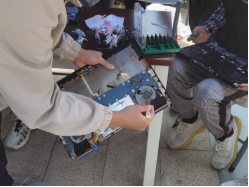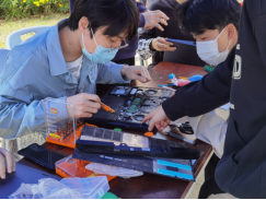 拆卸完成后,社团成员开始为电脑清灰。电脑清灰主要是清理风扇部分灰尘,同时更换导热硅脂,给电脑"降降温",避免由于凝固或硅油挥发导致导热性能下降,造成CPU和GPU的温度升高。此外,社团成员还为广大师生提供电脑维修服务。