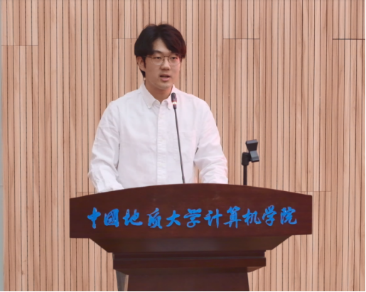 2018级地学信息工程博士研究生王玥玮代表在校生发言。他结合过往的科研成长经历,与新生分享三点体会:一是要行成于思,千锤百炼,坚韧不拔;二是要沟通合作,互相学习,有效交流;三是要勇于尝试,返躬内省,前覆后戒。希望大家锚定方向、砥砺前行,度过充实又有意义的研究生生涯。