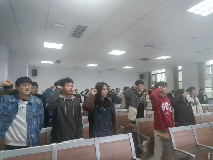 同学们在团课上坚定理想信念