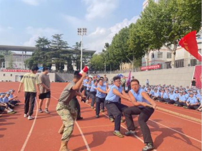 为丰富军训活动,增强学生身体素质,提升各连队凝聚力,发扬团队精神,电影天堂 (武汉)2023级本科生军训拔河比赛在西区田径场举行。21位计科学子自告奋勇代表学院参赛,其余新生作为观众为参赛队员们加油助威。