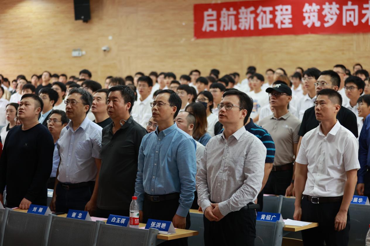 班主任代表、智能科学与技术系特任副教授黄绍广发言。他强调大学生涯的第一步是明确目标,做有理想的人,根据不同的目标制定相应的计划并为之努力;第二步是付诸行动,做行动的巨人,在求学路上,背靠学院的坚强后盾,同学们应该学会利用身边宝贵的资源,多向前辈沟通请教;第三步是不惧挫折,做积极向上的人,求学路上难免遇到挫折,保持一颗积极向上的心,迎难而上、总结经验、不断成长。同时,他鼓励同学们培养一个业余爱好,提高交际能力和团队合作能力,涵养心灵。