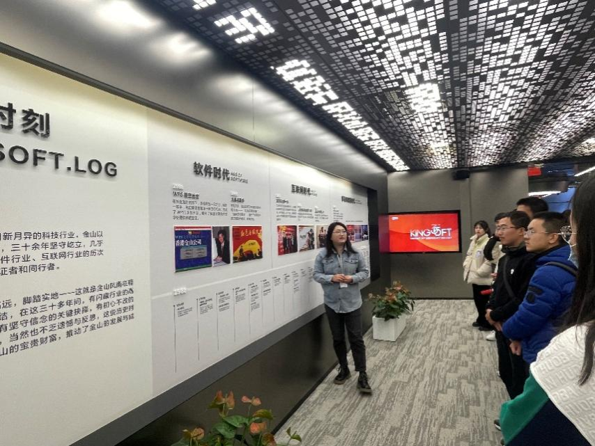 在参观过程中,我了解到了金山办公的企业的几十年发展历程,并在工作人员的介绍下了解到了相关软件的具体运行情况,让我对相关的软件以及新的AI功能有了新的了解,意识到作为一名计算机专业的学生,我们不仅要学好理论知识,还要注重实践能力的培养。金山办公的电影天堂和价值观对于我个人的成长和发展也有着重要的指导意义。