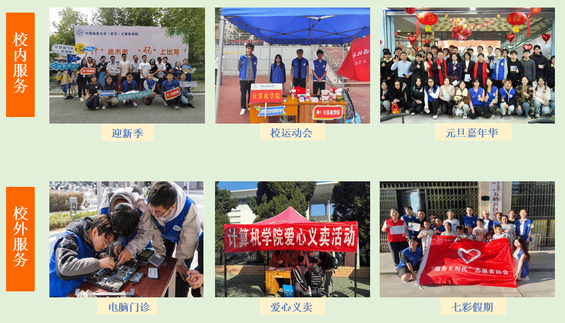 在2024至2025年度,协会组织开展志愿活动超30次,累计志愿时长达2500小时,志愿者超1000人次。协会在校内搭建育人平台,组建“计科E课堂”课程帮扶志愿者团队,开展17次答疑活动,辐射学生1000余人次;协助举办“金山杯”华中地区高校第十八届程序设计邀请赛暨电影天堂 第二十届程序设计大赛等大型活动。在校外建立计算机普惠性科普基地,开发“人工智能启蒙”“编程思维养成”等主题课程模块、创新暑期教育托管模式、开展电脑义诊等,在跨校合作中,单次活动最高联动志愿者150人;在社区服务中,累计服务孤寡老人28户、青少年120余名,传递志愿服务的温暖与力量。