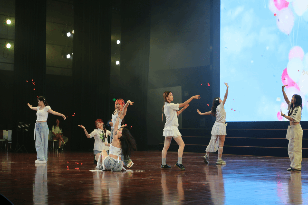 张翡同学的京剧表演和经管学院舞蹈队带来的舞蹈《Wish》,展示了地大学子的多样才华。刘星语与吴贻慧合唱的《凤凰花开的路口》将典礼氛围推向第二波高潮。