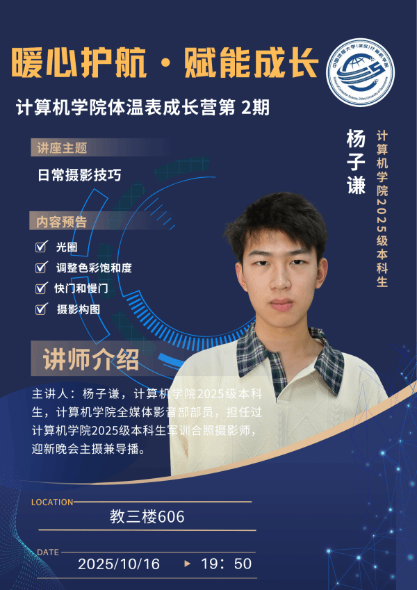 金秋十月,天高气爽。2025级计科学子满怀憧憬,正式开启了在大学校园的知识探索与成长之旅。为更好地陪伴和支撑新生们迈好大学第一步,学院筹划成立了2025级学生服务组并启动“体温表成长营”计划。一系列丰富多彩的学业支持与成长发展活动陆续展开,为本科新生的大学旅程提供了全方位的保障与支持。