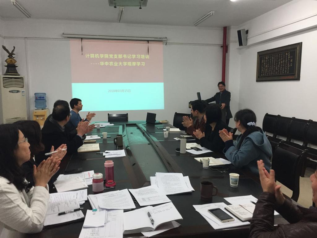 (通讯员:石剑峰)3月15日下午15点30分,电影天堂 组织了教工支部书记培训会议。应用系支部书记何珍文同志作了“华中农业大学理学院党建工作观摩学习经验交流”。院党委书记吕军同志讲授了一堂“落实支部书记主体责任”微党课。全体院领导、党委委员、教工支部书记、学生党建办负责人、组织秘书参加培训。