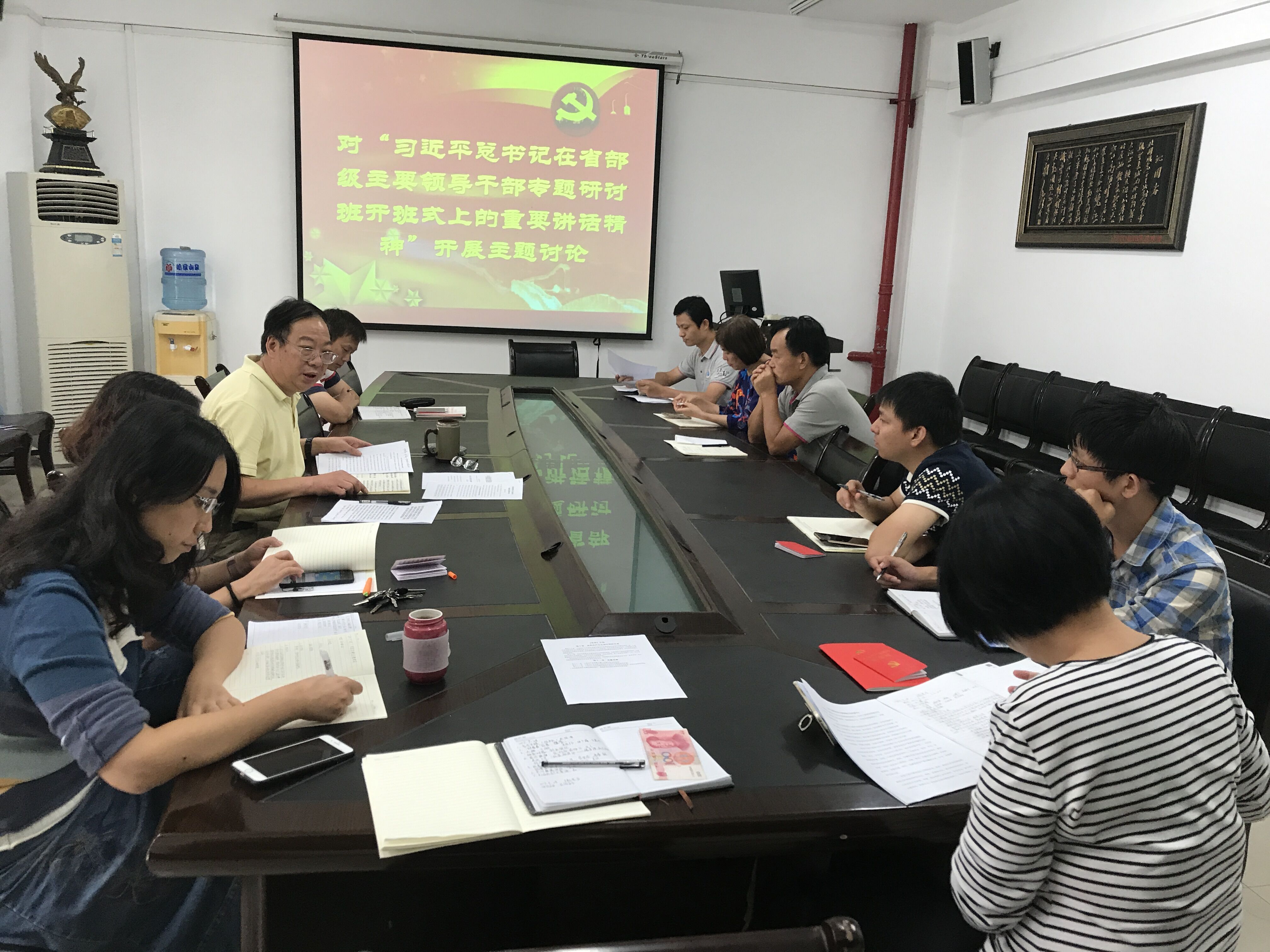 会上,大家主要对“习总书记在省部级主要领导干部专题研讨班开班式上的重要讲话”进行了热烈的讨论。大家纷纷畅所欲言,谈自己学习的心得体会。院党委书记吕军同志说:“习总书记在这个开班仪式的讲话是为即将召开的十九大做准备,进一步明确了党和国家在新时期的发展方向。因此我们要增强政治意识、大局意识、核心意识、看齐意思,要以此思想为指导,自觉在思想上、行动上、政治上保持一致,努力推动各项工作顺利开展。支部书记石剑峰同志说:“习总书记高瞻远瞩,站在全局的高度谋篇布局,深思熟虑。让大家感受到了莫大的鼓舞和信心。大家有了更高的热情投身到社会主义建设中去。”同志们也纷纷表示,一定要坚定信念、端正态度、努力工作,为祖国各项宏伟目标的实现贡献力量!