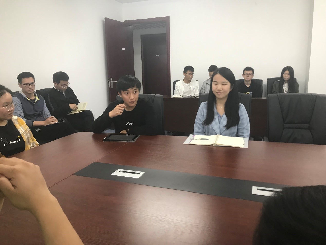 2018级硕士研究生第二党支部书记王开对党支部主题教育活动的进展情况做汇报。吕军教授听后表示,要重视学生党支部主题教育活动,将“规定动作”做到位。