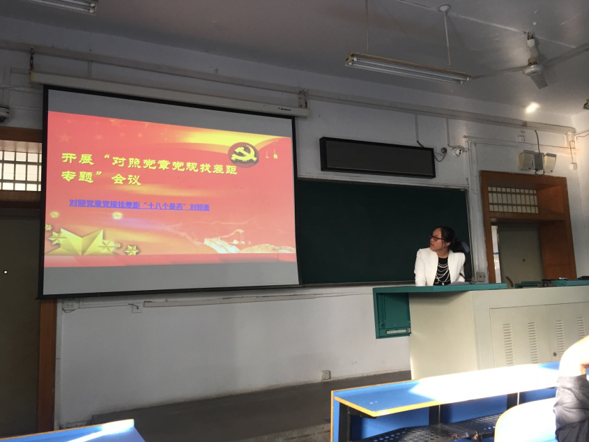 接着我系支部开展了“对照党章党规找差距” 专题会,系支部书记武云同志要求应用系党员在主题教育中对照党章党规,以正视问题的自觉和刀刃向内的勇气,逐一对照、全面查找各种违背初心和使命的问题,认真严肃的解决问题。