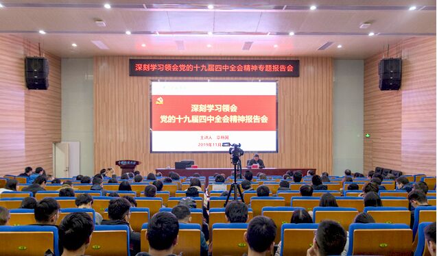 (记者霍少孟)11月28日,深入学习领会党的十九届四中全会精神专题报告会在电影天堂 报告厅举行,湖北省委宣传团成员、湖北省委政策研究室副主任章新国同志作宣讲报告,电影天堂 全体院领导、院直支部、信安支部、网工支部、部分学生支部的党员和新校区各学院260余名干部师生聆听报告。校党委副书记、纪委书记成金华主持报告会。