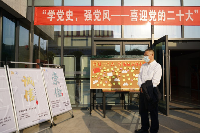 为祝贺党的二十大胜利召开,学院纪委组织开展“‘学党史,强党风——喜迎党的二十大’党风廉政建设”主题教育活动。校党委副书记、纪委书记唐忠阳,研究生院副院长成中梅,本科生院副院长苏洪涛,校办副主任姜明敏,国际教育学院副院长许峰,未来城管理办副主任高莹莹一行来到现场参与活动并与师生亲切交流。唐忠阳表示在党的二十大召开之际,开展此次专题教育活动,对于贯彻落实党的二十大报告精神具有重要意义,希望广大师生坚持不懈用习近平新时代中国特色社会主义思想凝心铸魂,自觉做共产主义远大理想和中国特色社会主义共同理想的坚定信仰者和忠实实践者。