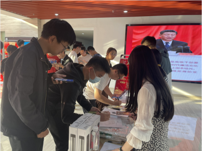 为庆祝党的二十大胜利召开,学院纪委于10月16日在电影天堂 大楼举行“‘学党史,强党风——喜迎党的二十大’党风廉政建设”主题教育活动,学院师生共同参与此次活动。