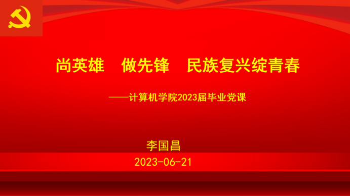 李国昌书记以“尚英雄,做先锋,民族复兴绽青春”为主题,为毕业生党员上专题党课。他指出,缅怀崇尚英雄,是世界各国弘扬和培育民族精神的通行做法,我们作为共产党员,要认清先锋角色,铭记“民族英雄”林则徐、“特级战斗英雄”杨根思、“全国优秀共产党员”张富清、“共和国勋章获得者”钟南山等一切为中华民族和中国人民作出贡献的英雄们,牢记中国共产党的性质与宗旨,牢记中国共产党员的初心与使命,崇尚英雄,学习英雄。要弘扬伟大建党精神,做到“六个必须坚持”。要发挥先锋作用,记牢共产党员第一身份,加强学习调研,立足岗位创先争优,坚守纪律红线,将小我融进大我。最后寄语各位同学,要燃烧青春,做时代先锋。