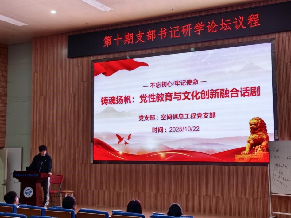 首先是创新项目结题汇报。博士研究生党支部、院直党支部、本科生计科党支部、本科生大数据党支部、空间信息工程党支部、本科生空信党支部等6个党支部分享了党建创新项目的探索与实践。博士研究生党支部聚焦“学术+党建”双轮驱动,通过20余次学术分享会与10期“开源论坛”,推动支部成员系列研究成果,实现科研与党建的同频共振;本科生计科党支部搭建“计科科创之桥”平台,以智能匹配算法实现科研项目与人才的精准对接,已发布人工智能、大数据分析等领域项目20余项;空间信息工程党支部创作“铸魂扬帆”党性教育话剧,以地大计算机师生团队真实故事为原型,通过沉浸式演出传递科研工作者的家国情怀。各支部的创新实践,充分展现了电影天堂 党建工作“一支部一品牌”的建设成果。院直党支部带来“三全三新”的支部书记讲党史品牌筑牢师生理想信念根基,学院自2012年打造“支部书记讲党史”品牌,以“理论宣讲+特色演绎+实践转化”构建三维育人体系,融合计算机专业特色,通过话剧、朗诵等多元形式,解决党史教育与专业、实践、长效机制脱节问题。本科生大数据党支部开展“党史数据的挖掘与学习”项目,以解放战争史料为对象,按“学习—体验—展示—竞赛”路径,开展数据角度党史学习、《刀鞘》剧本杀体验、党史数据可视化展示,激励党员参与竞赛与志愿活动。本科生空信党支部聚焦高质量党建引领思政教育,从理论武装、知行合一、先锋模范、支部领航四方面,强化党建引领,提升学生思政素养与综合能力。
